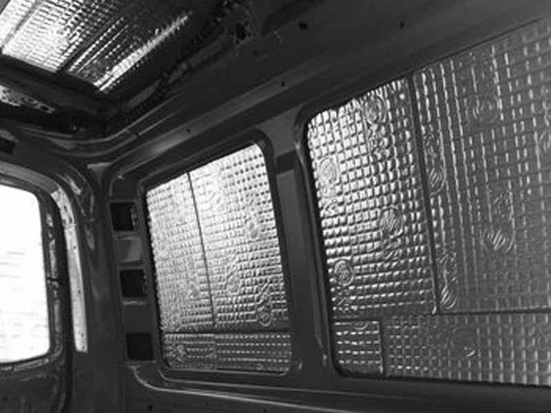 Deadening material applied to panels to reduce road and engine noise. Insulation fitted throughout for temperature control and comfort.